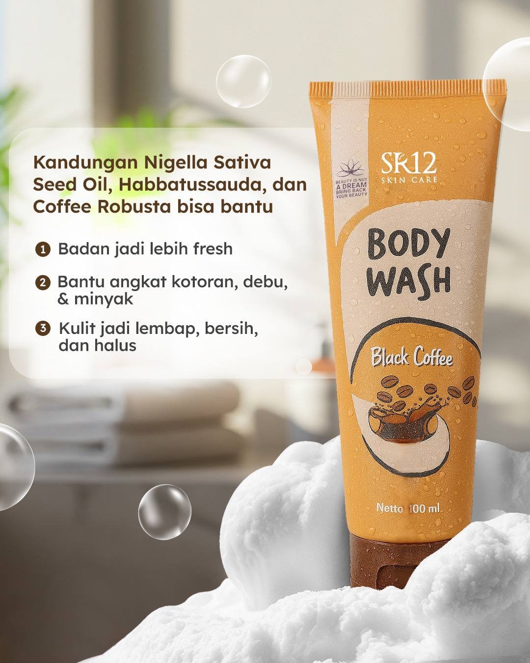 Body Wash Black Coffee hadir sebagai pengalaman mandi yang terasa hidup dan berbeda, memanjakan kulit dengan kesegaran dan kehangatan aroma kopi yang membangkitkan mood ππΊπΌπΏπ. Busa lembutnya membersihkan tanpa menghilangkan kelembapan alami, dibantu butiran scrub halus yang menyapu kusam dengan cara elegan, sementara nutrisi alami meresap membuat kulit terasa lebih halus dan segar.Β Black Coffee menghadirkan sentuhan energik yang unik dan berkarakter. Jika rutinitas mandi ingin terasa lebih istimewa dan menyenangkan, mungkin ini saatnya memilih varian favoritmu dan menikmati setiap tetes perawatannya πΉπ»π±ππ.