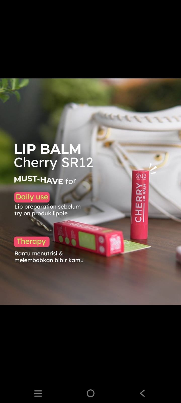 Cherry Lip Balm Moisturizing SR12 hadir sebagai sentuhan ceria yang membuat bibir terasa lebih nyaman dan tampak manis alami 😊🌹🌼 dengan olesan lembut beraroma cherry yang menggoda, lip balm ini membantu menjaga kelembapan sekaligus memberi rona segar yang memperindah senyum tanpa terlihat berlebihan 🌿🍃💚 teksturnya terasa ringan dan menyatu di bibir, menjadikannya teman praktis untuk dipakai kapan saja 🌺🌻💛 telah terdaftar POM NA18241300784, produk ini menjadi pilihan menarik bagi kamu yang ingin merawat bibir sambil menambahkan sentuhan warna lembut — pakai setiap hari, nikmati rasanya, dan biarkan bibirmu tampil lebih hidup dengan cara yang simpel dan elegan 😊🌸🍀🍃
