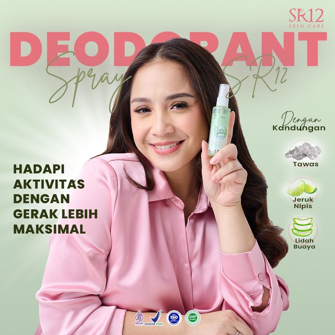 SR12 Deodorant adalah deodoran spray tanpa alkohol yang diformulasikan untuk membantu mengurangi keringat berlebih dan bau badan tidak sedap akibat bakteri. Mengandung Tawas Murni kualitas terbaik, Aloe Vera, dan ekstrak Jeruk Nipis (Citrus aurantifolia) yang dikenal sebagai bahan alami dalam membantu menyegarkan, merawat kulit ketiak, dan menjaga kesegaran hingga 24 jam.