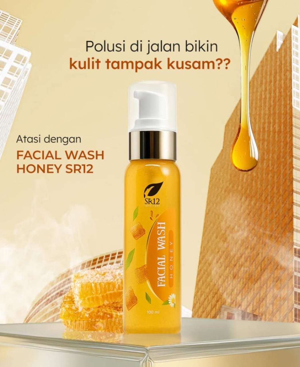 Facial Wash Honey SR12 dengan ekstrak madu alami yang bikin kulit terasa lembap, segar, dan bersinar ✨