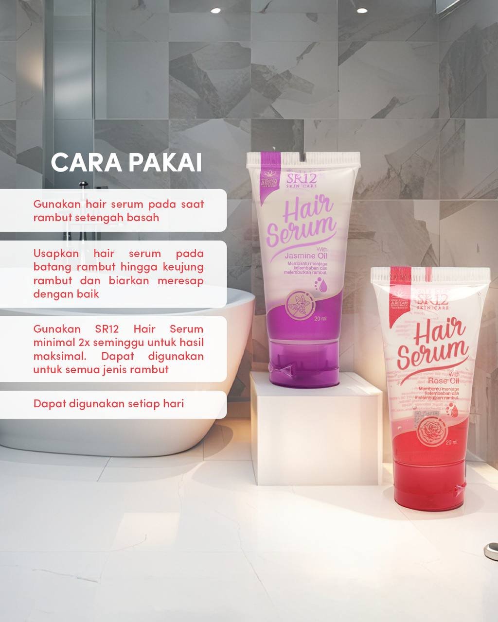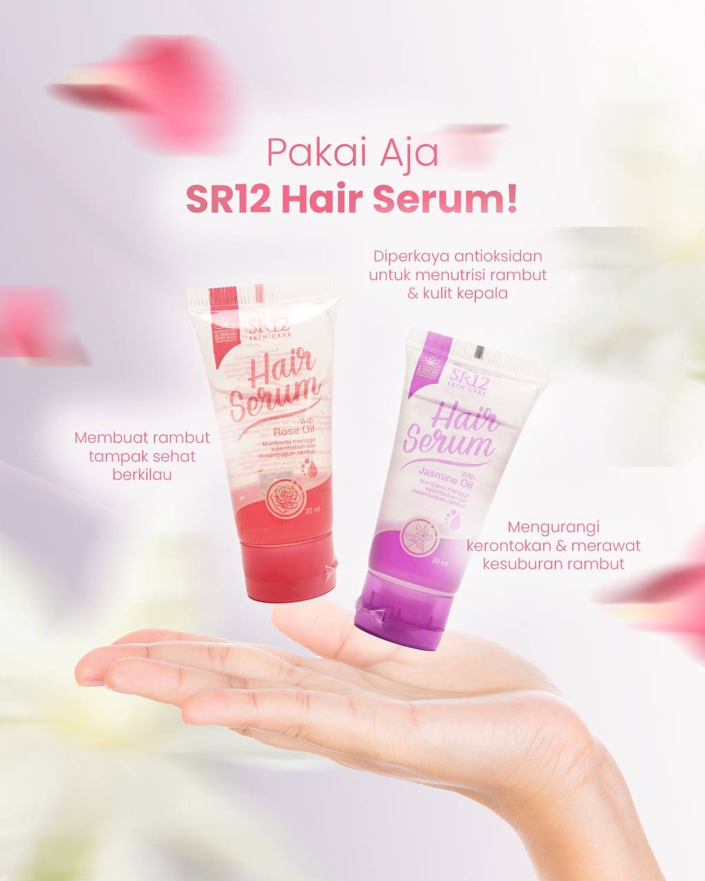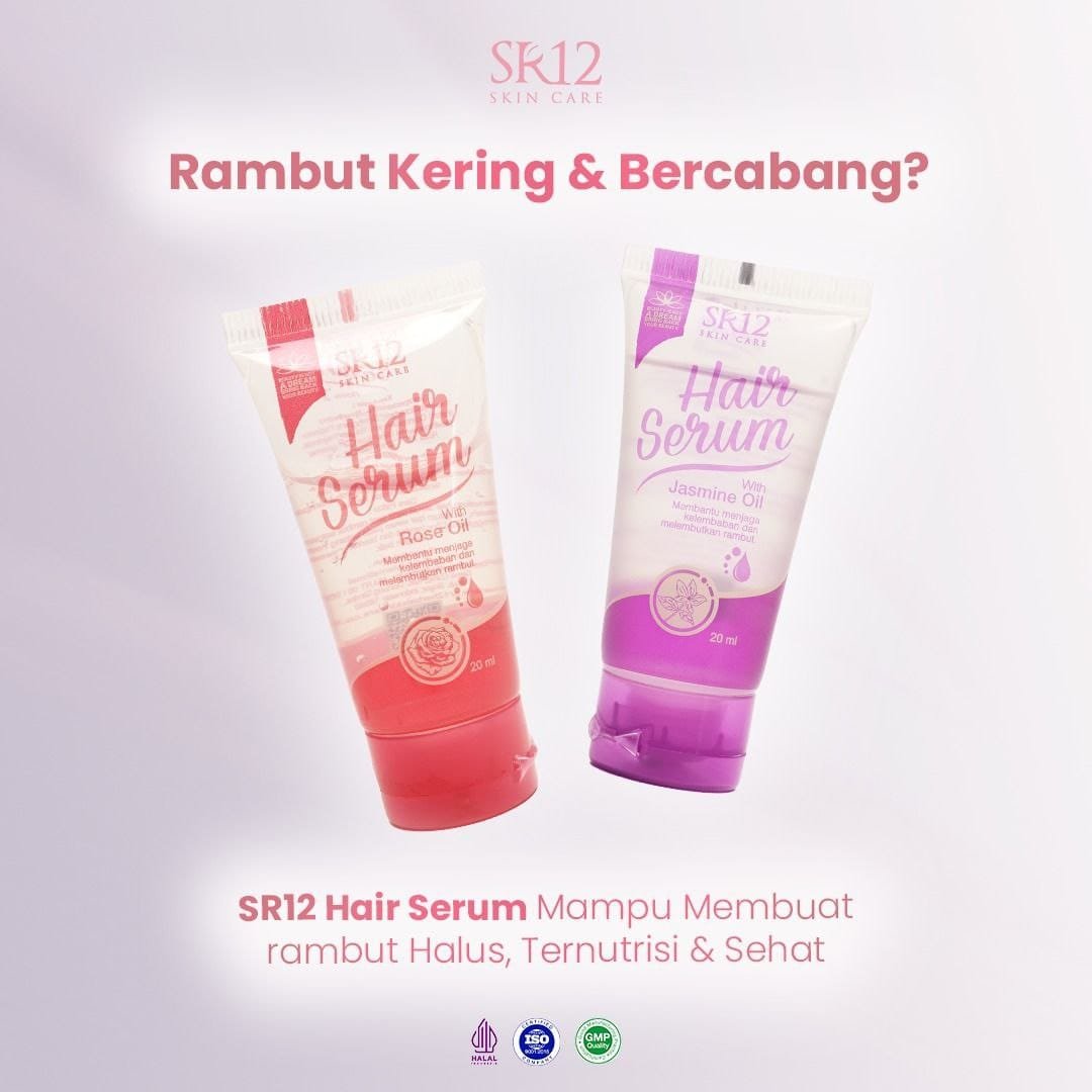 SR12 Hair Serum merupakan perawatan rambut harian berbentuk serum yang berfungsi untuk menjaga kelembapan rambut, mengurangi kerontokan, memperbaiki rambut kering dan bercabang, serta membuat rambut tampak lebih lembut dan sehat.