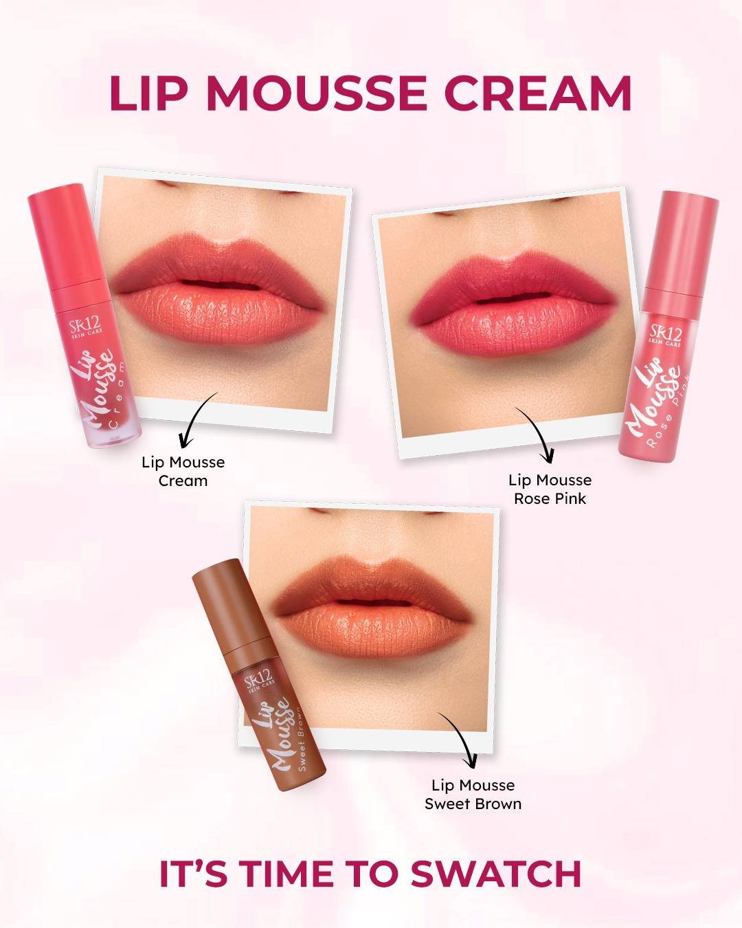 Lip Mousse Cream SR12 hadir sebagai peluk warna yang terasa empuk di bibir, menghadirkan tampilan segar dengan sentuhan lembap yang terlihat manis dan modern 😊🌹🌼🌿 Tersedia dalam pilihan Rose Pink, Cream, dan Sweet Brown, lip mousse ini memberi hasil warna halus yang menyatu alami, tidak cracky, dan nyaman dipakai seharian berkat teksturnya yang ringan seperti awan. Diperkaya Vitamin E dan sunscreen agent, bibir tetap terasa lembap, terlindungi, dan tampak sehat bercahaya, bahkan bisa difungsikan sebagai blush on untuk pipi yang merona lembut. Terdaftar BPOM dan praktis dengan netto 2 g, Lip Mousse SR12 pas jadi satu produk multifungsi di tas cantikmu. Yuk, poleskan sedikit dan biarkan senyummu berbunga lebih indah hari ini 🌸💛🍃