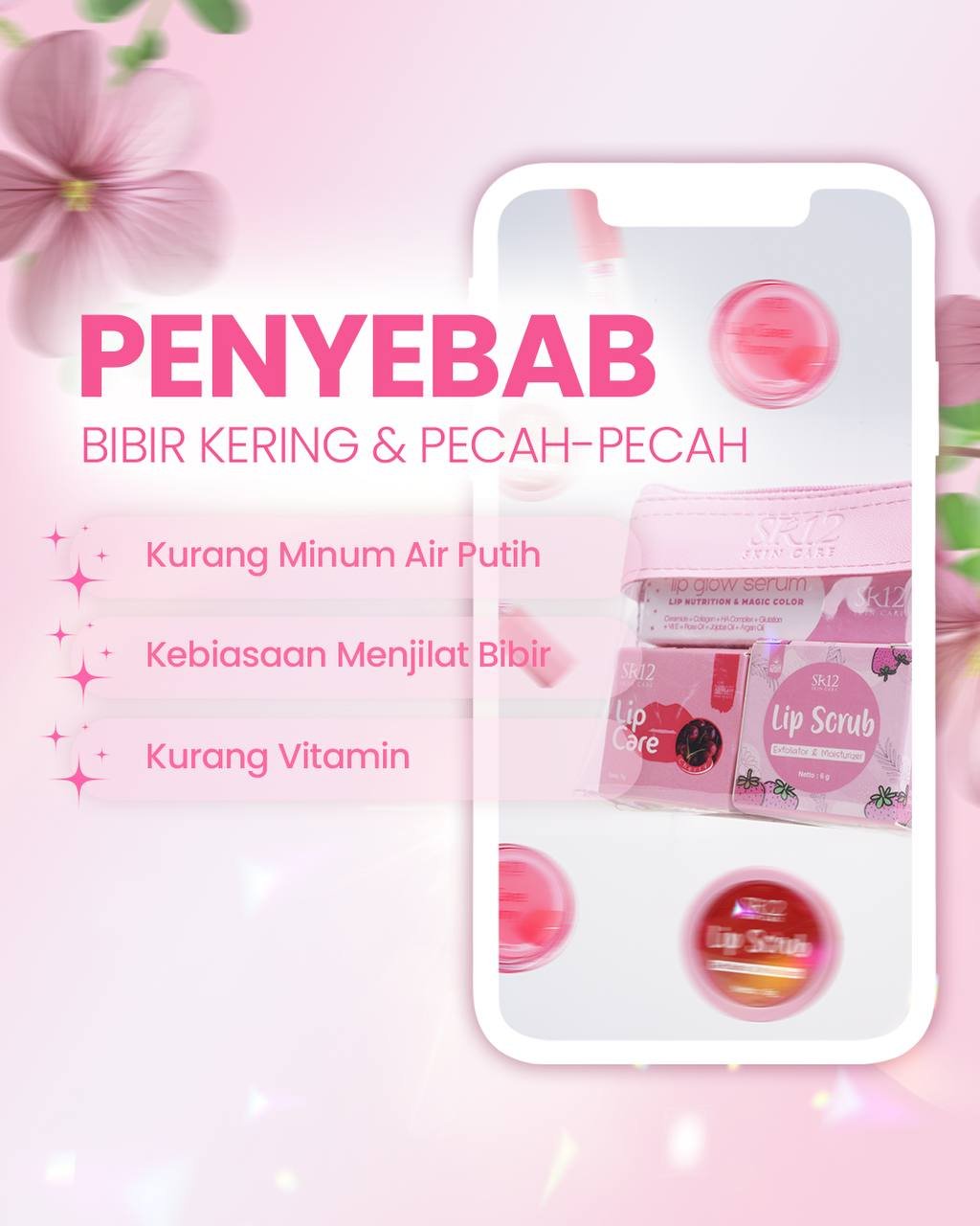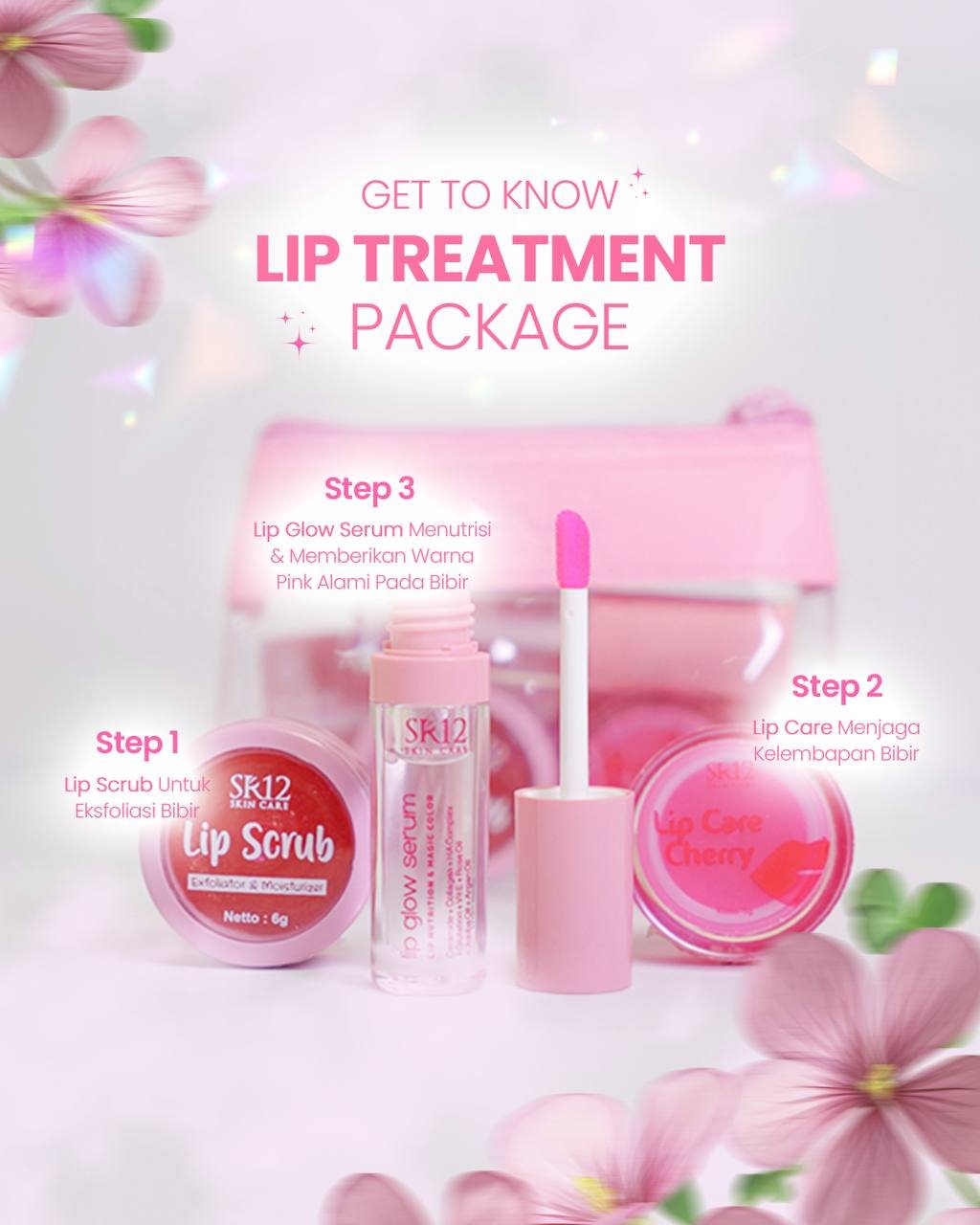 Lip Treatment Package SR12 hadir sebagai rangkaian manis yang membuat perawatan bibir terasa lebih lengkap dan menyenangkan 😊🌹🌼 dimulai dari sentuhan scrub lembut yang membantu merapikan permukaan bibir, dilanjutkan lip care cherry yang menjaga kelembapan, lalu dipertegas lip glow serum yang memberi kesan bibir tampak lebih hidup, plumpy, dan berwarna natural 🌿🍃💚 semuanya dikemas rapi dalam pouch cantik yang praktis dibawa ke mana saja, menjadikannya pilihan menarik untuk kamu yang ingin bibir terlihat terawat tanpa ribet 🌺🌻💛 telah terdaftar BPOM, paket ini cocok dijadikan teman harian atau hadiah kecil penuh perhatian — rawat perlahan, nikmati prosesnya, dan biarkan senyummu semakin memikat secara alami 😊🌸🍀🍃