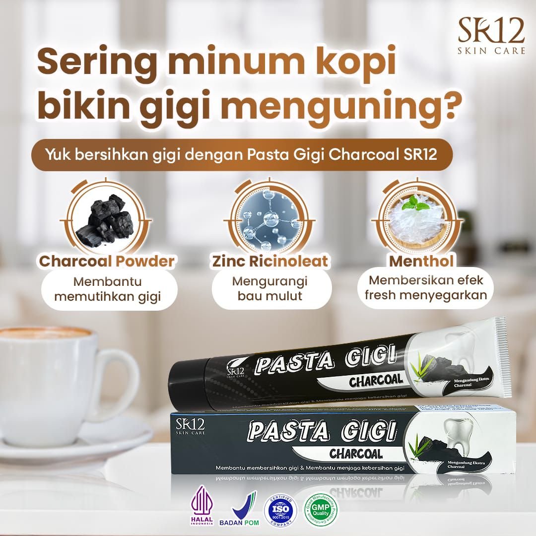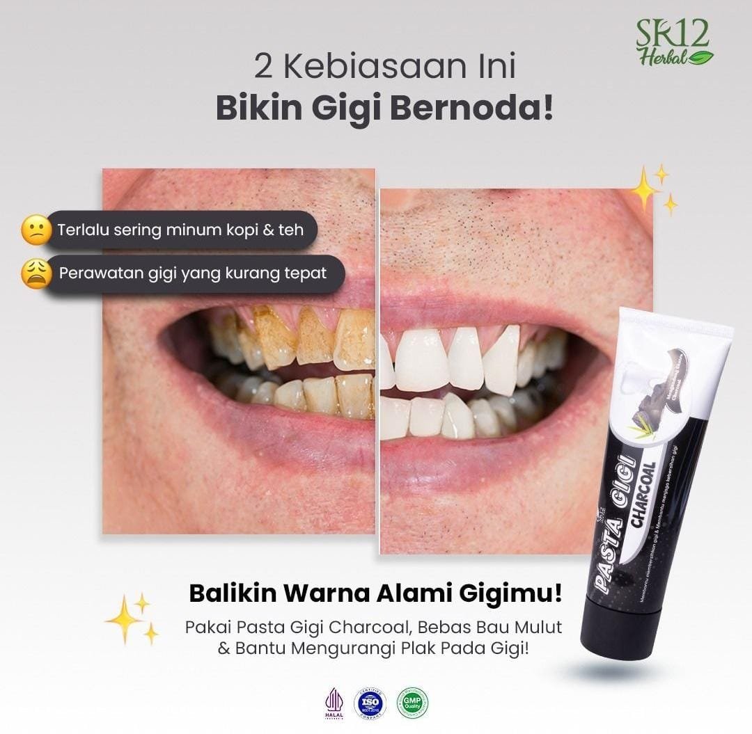 Tampil lebih percaya diri dengan senyum segar setiap hari bersama Pasta Gigi Charcoal SR12 🌸🖤 Diperkaya charcoal aktif dan bahan herbal pilihan, formulanya membantu membersihkan noda, merawat kebersihan gigi, serta mengembalikan kilau alami tanpa rasa perih di gigi sensitif 💐 Digunakan rutin, mulut terasa lebih segar dan nyaman sepanjang hari 🌷 Pilihan lembut untuk perawatan gigi harian yang sederhana namun bermakna—karena senyum indah selalu berawal dari perawatan yang tepat 🌹💖