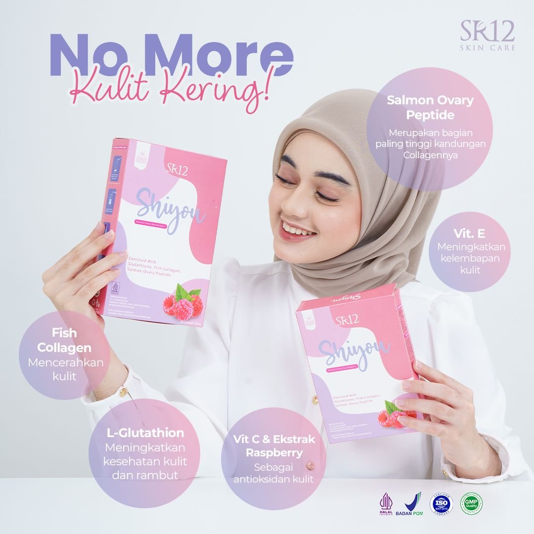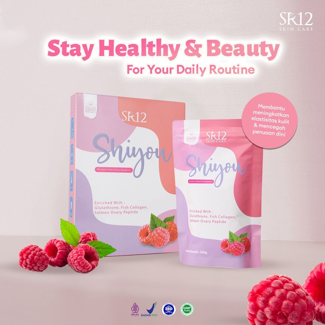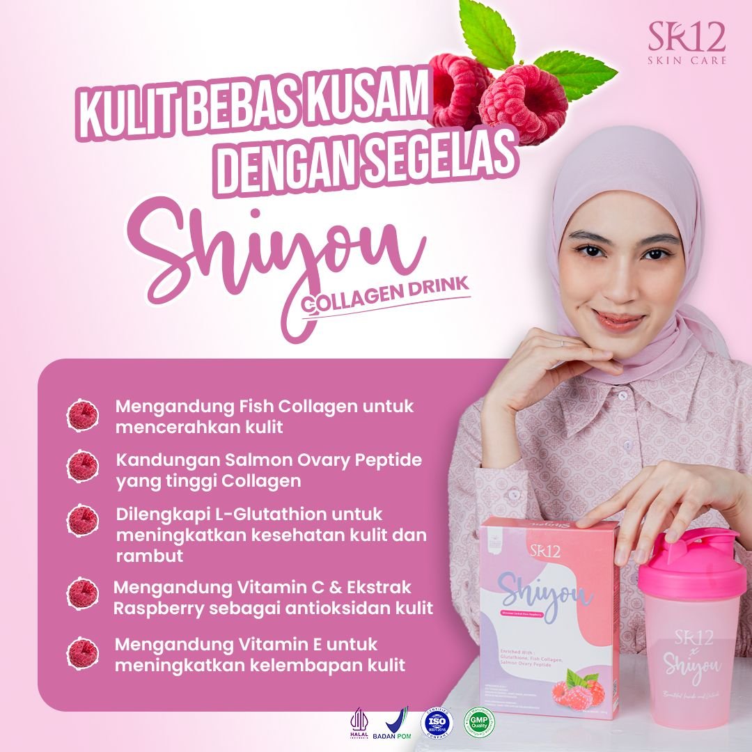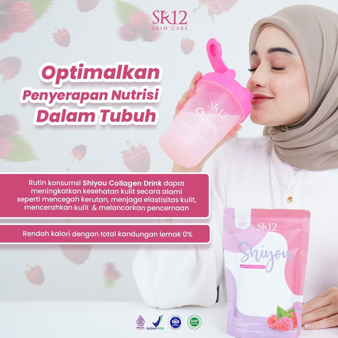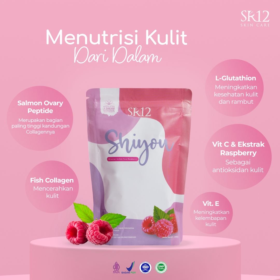 Dapatkan kulit glowing, kenyal, dan sehat bebas kerutan dengan Shiyou Collagen Drink SR12. Minuman kolagen rasa raspberry ini diformulasikan khusus dengan Salmon Ovary Peptide, Fish Collagen, dan L-Glutathione untuk mencerahkan kulit, menyamarkan noda hitam, serta melancarkan pencernaan. Rendah kalori, 0% lemak, dan terdaftar BPOM, menjadikannya solusi perawatan kulit dari dalam yang aman dan efektif untuk rutinitas kecantikan harian Anda.